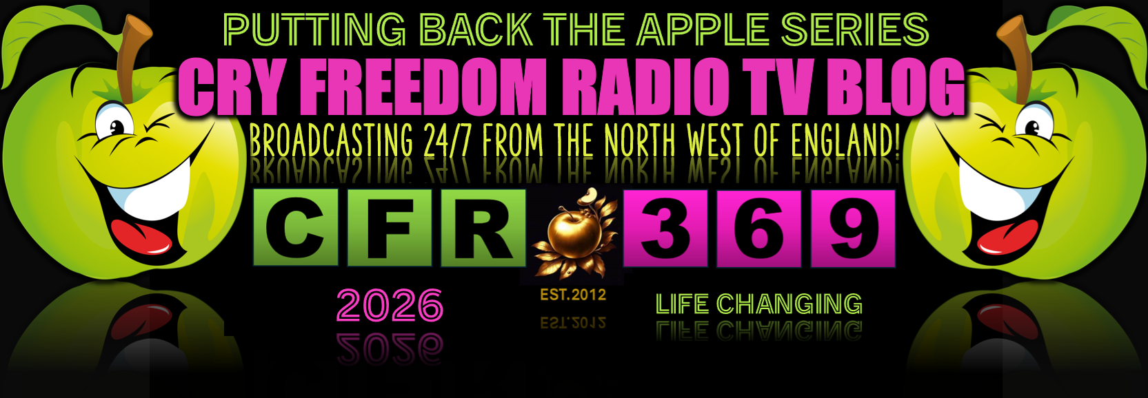 IMPORTANT NOTE: THIS WEBSITE IS DESIGNED FOR A DESK/LAPTOP, IT WILL WORK ON A PHONE/DEVICE BUT MUST BE VIEWED IN LANDSCAPE MODE WITH PHONE TURNED HORIZONTAL TO AVOID OVERLAP OF IMAGES! SEE THE SITE MENU'S ABOVE THIS TO GET TO EVERY WEBPAGE ON CRY FREEDOM RADIO/TV/BLOG!